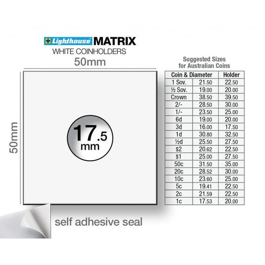 Lighthouse MATRIX WHITE Self-Adhesive Coin Holders - 1 Cent Coin & Threepence: 17.5mm