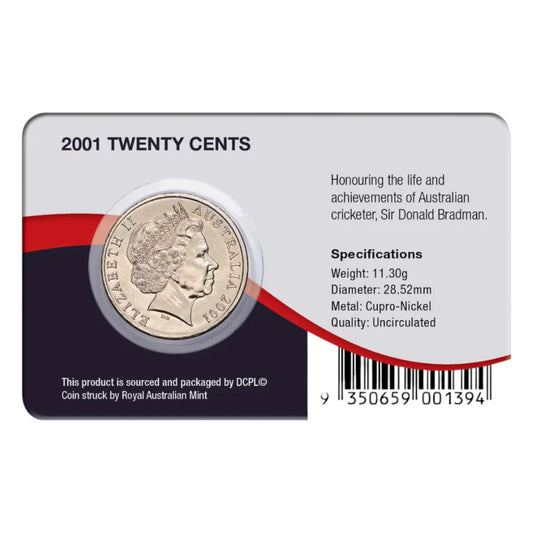 2001 20c Coin - Sir Donald Bradman Cupro-Nickel Uncirculated Coin Pack