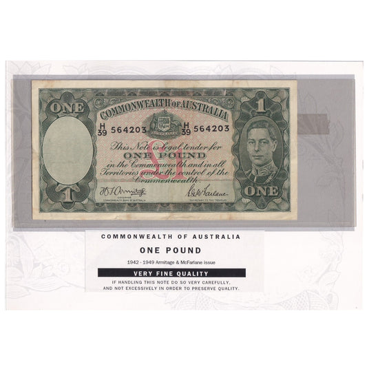 1942 Australian £1 Note - The Commonwealth of Australia One Pound Note Collector's Folder - Very Fine