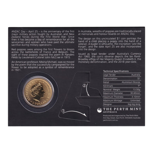 2018 Perth Mint ANZAC Day One Dollar Coin - Lest We Forget