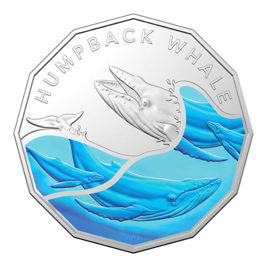 2023 50c Coloured Uncirculated Coin - Australian Antarctic Territory - Humpback Whale