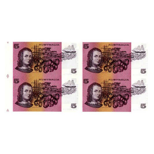 1990 $5 Notes - Fraser Higgins - Uncut Block of Four - U04(d)