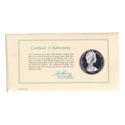 1976 Cook Islands "Wildlife Conservation" Cachet with Silver Proof Coin