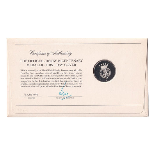 1979 The Official Derby Bicentenary Silver Proof Medallic First Day Cover