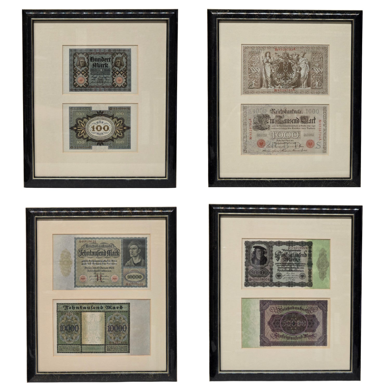 1910-1922 German Mark Notes - 100, 1000, 10000, 50000 - Framed