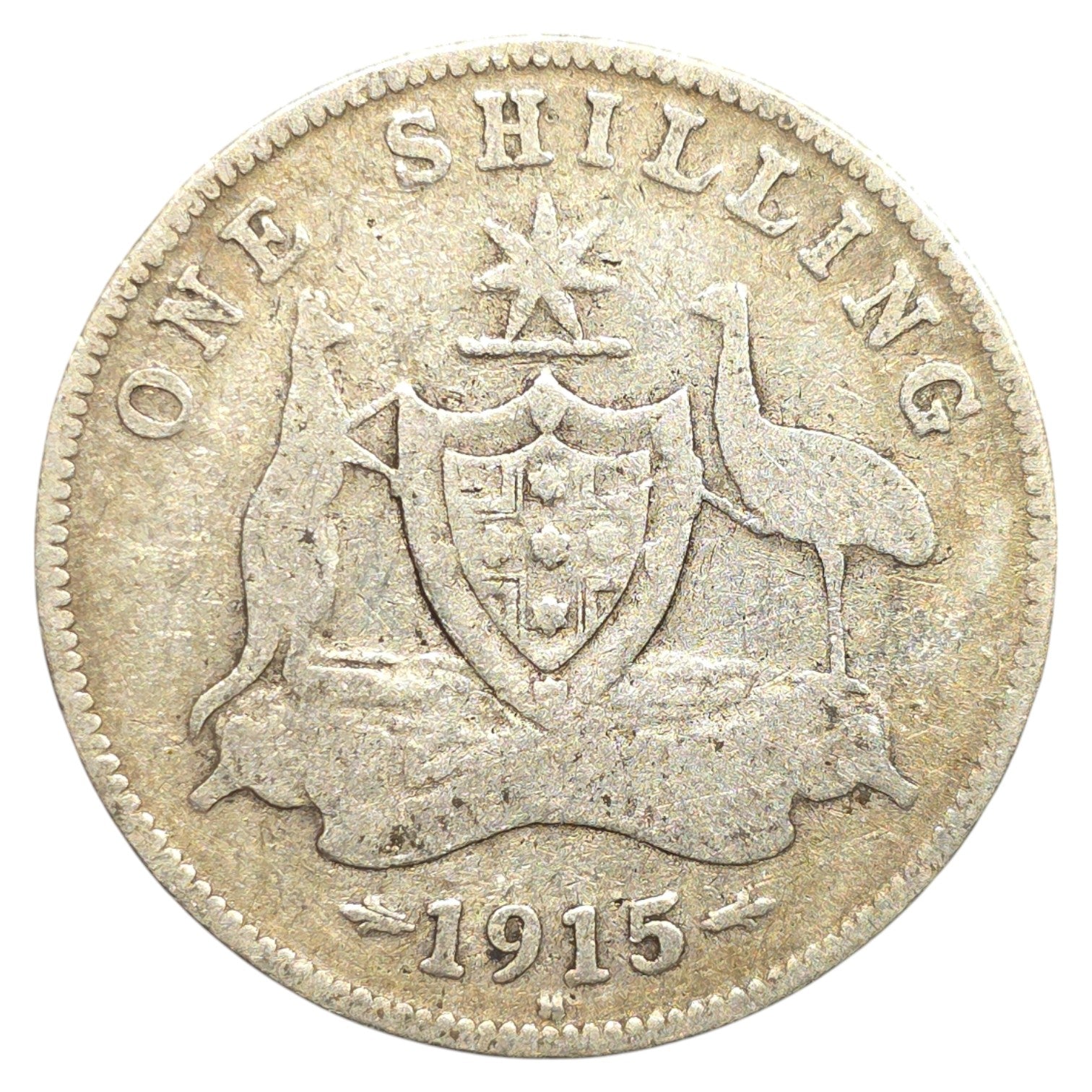 Discover a Scarce Piece of History: The 1915 (H) Australian Shilling - Very Good- Minted in Birmingham: Struck in Birmingham, England, with an approximate mintage of 500,000 pieces. It carries the 'H' mintmark below the date, signifying its production at the Heaton Mint.