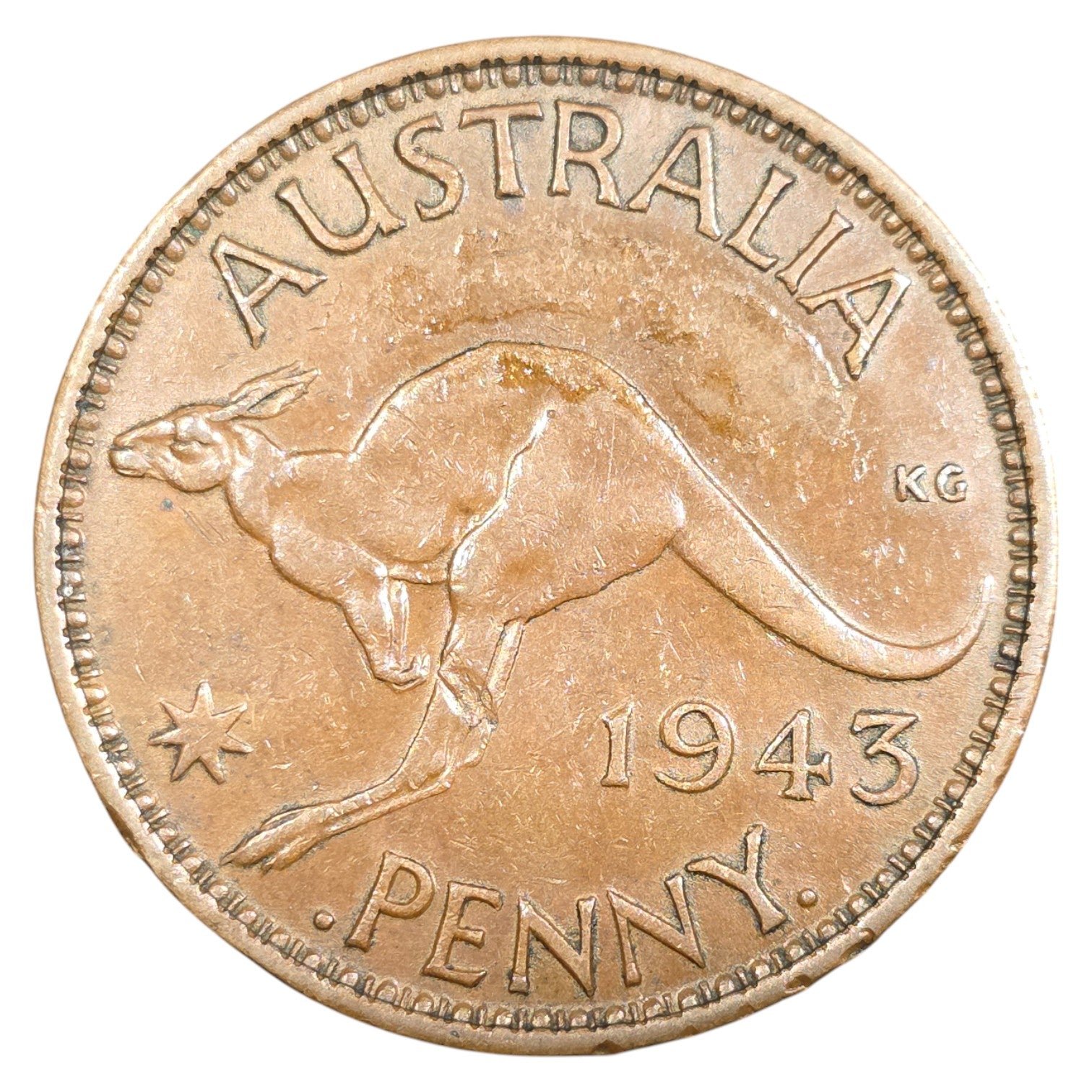 1943 I (Calcutta) Australian Penny - Extremely Fine (Adhesive)