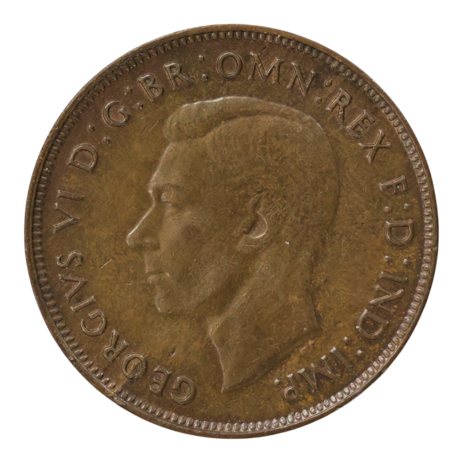 This scarce 1946 Australian Penny is a remarkable find, struck at the Melbourne Mint with a very limited mintage. Its unique flaw adds a captivating piece of history to any collection.
