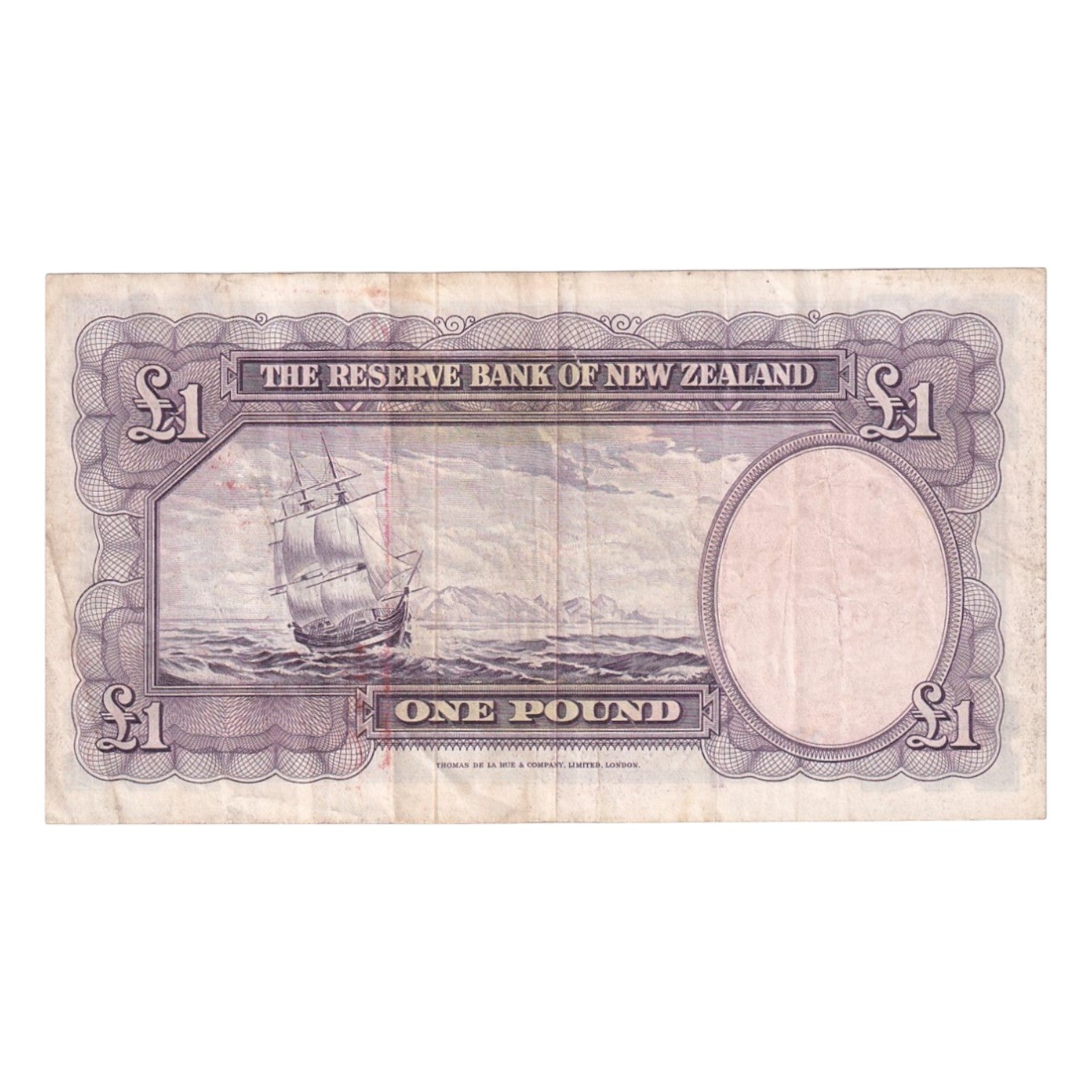 This well-preserved 1967 New Zealand one pound banknote is a historical artifact from the pre-decimal currency era. The purple design is set against a multicolored underprint, creating a visually striking note that tells a story of the nation's history.