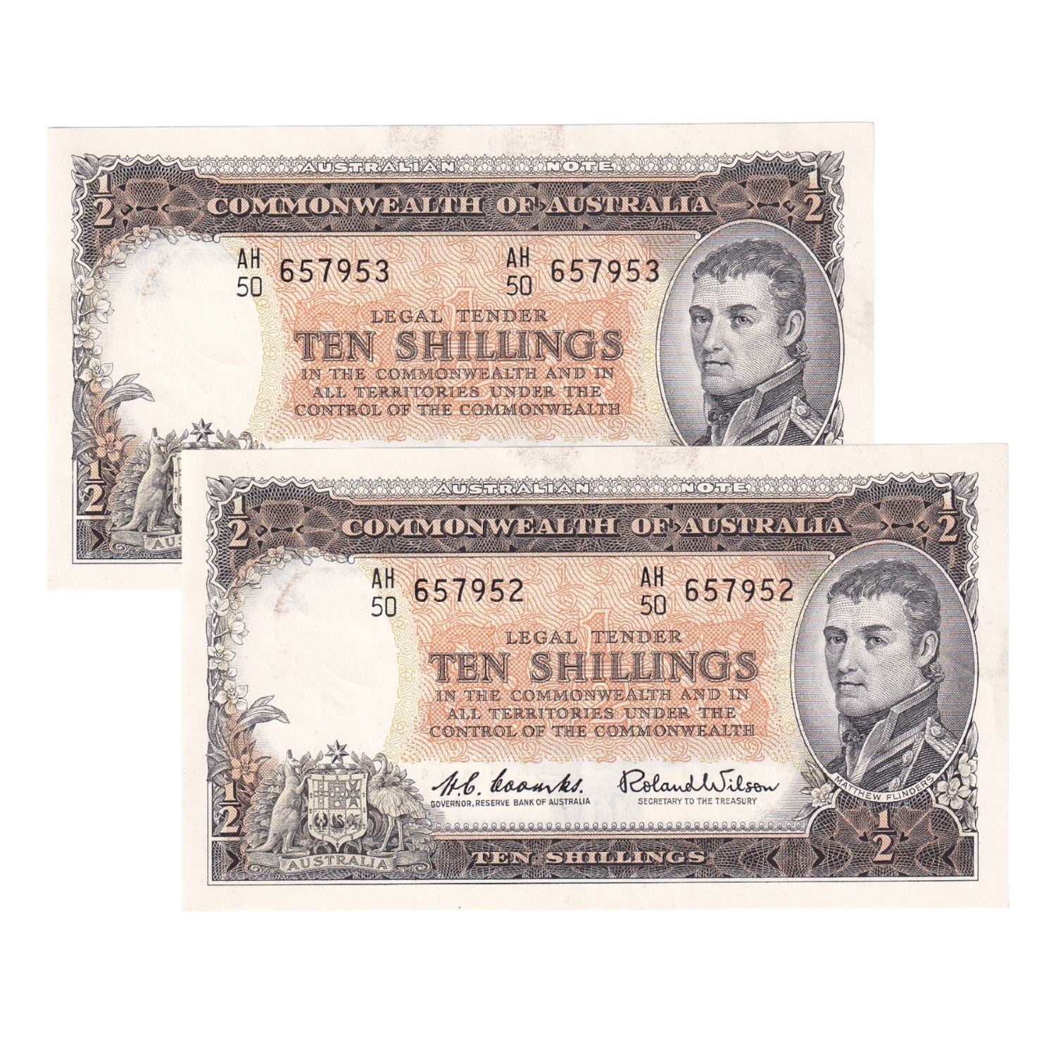This pair of 1961 Australian Ten Shilling Notes is a remarkable find from a pivotal time in the country's monetary history. They mark the transition of currency control from the Commonwealth Bank to the newly formed Reserve Bank of Australia.