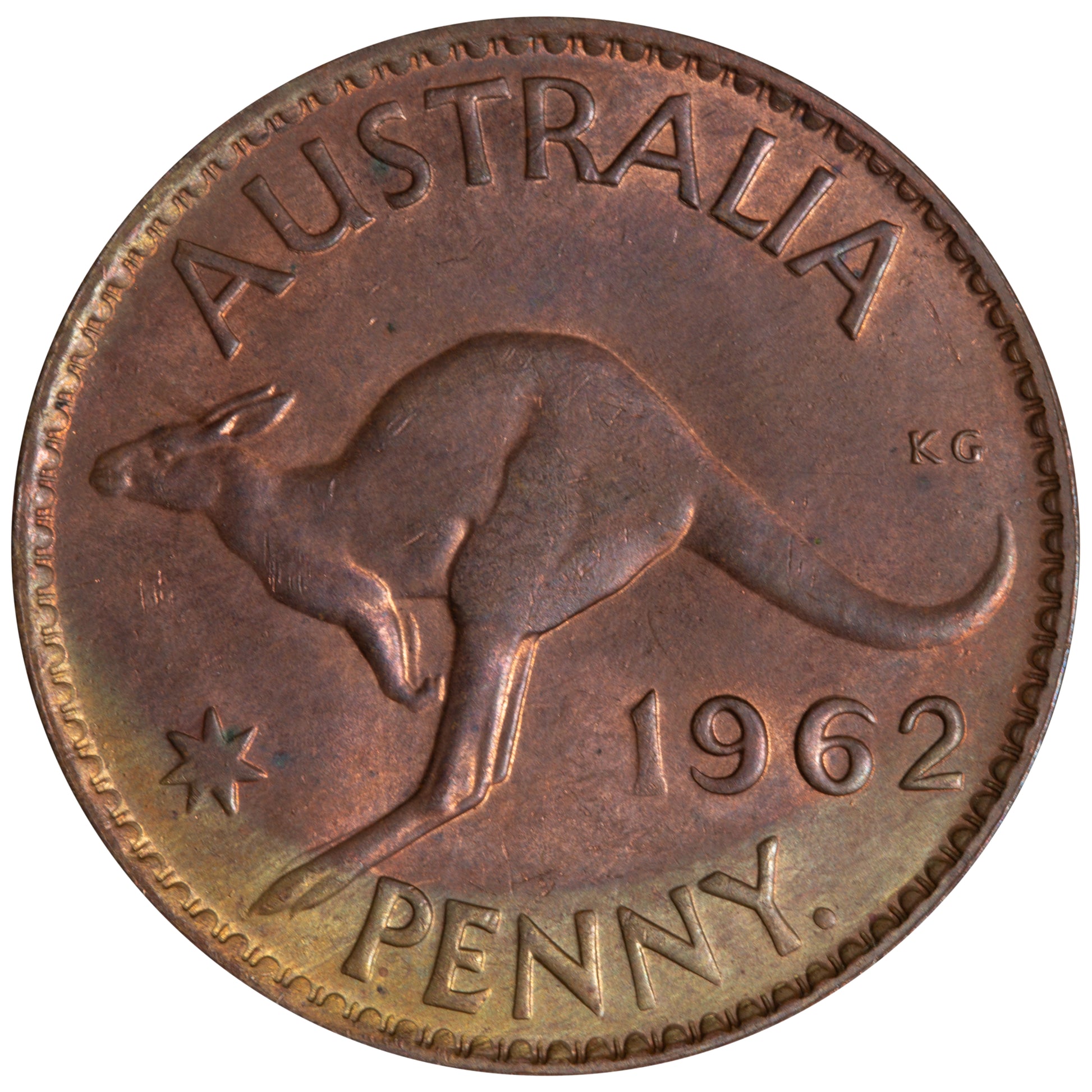 This 1962 Australian Penny is in About Uncirculated condition, exhibiting light signs of handling while retaining a soft, attractive lustre that transitions from red to gold. This coin is a desirable addition for collectors of Australian pre-decimal currency."