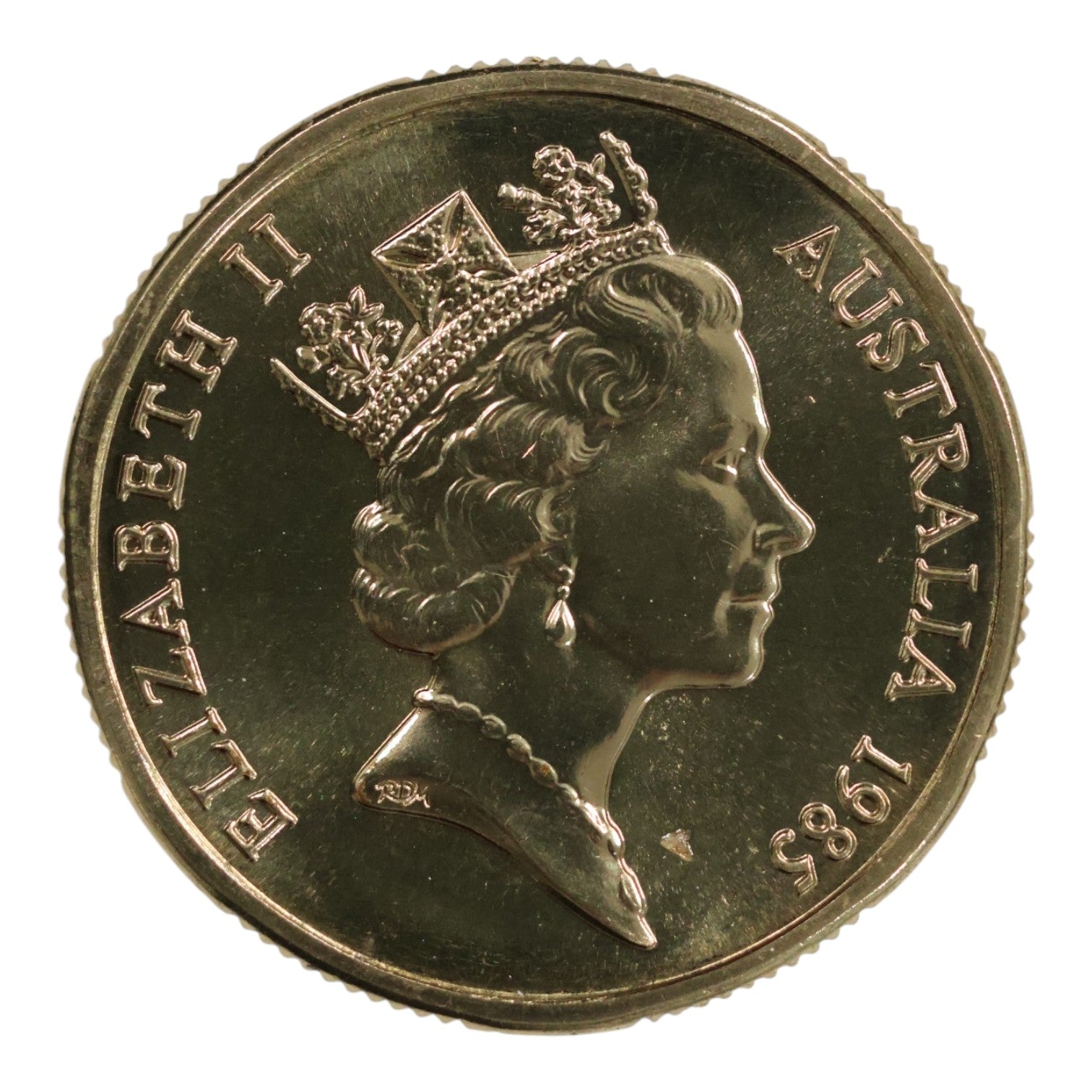 Following the successful introduction of the $1 coin in 1984 to replace the paper note, the 1985 issue solidified the "Mob of Roos" as a staple of Australian pockets. While it has a high mintage of 96.2 million, finding examples that have been preserved in uncirculated condition is essential for collectors. This year is particularly noted by numismatists for the transition to the more "regal" Maklouf effigy of the Queen, which includes the royal diadem and jewelry not seen on the previous Machin portrait.