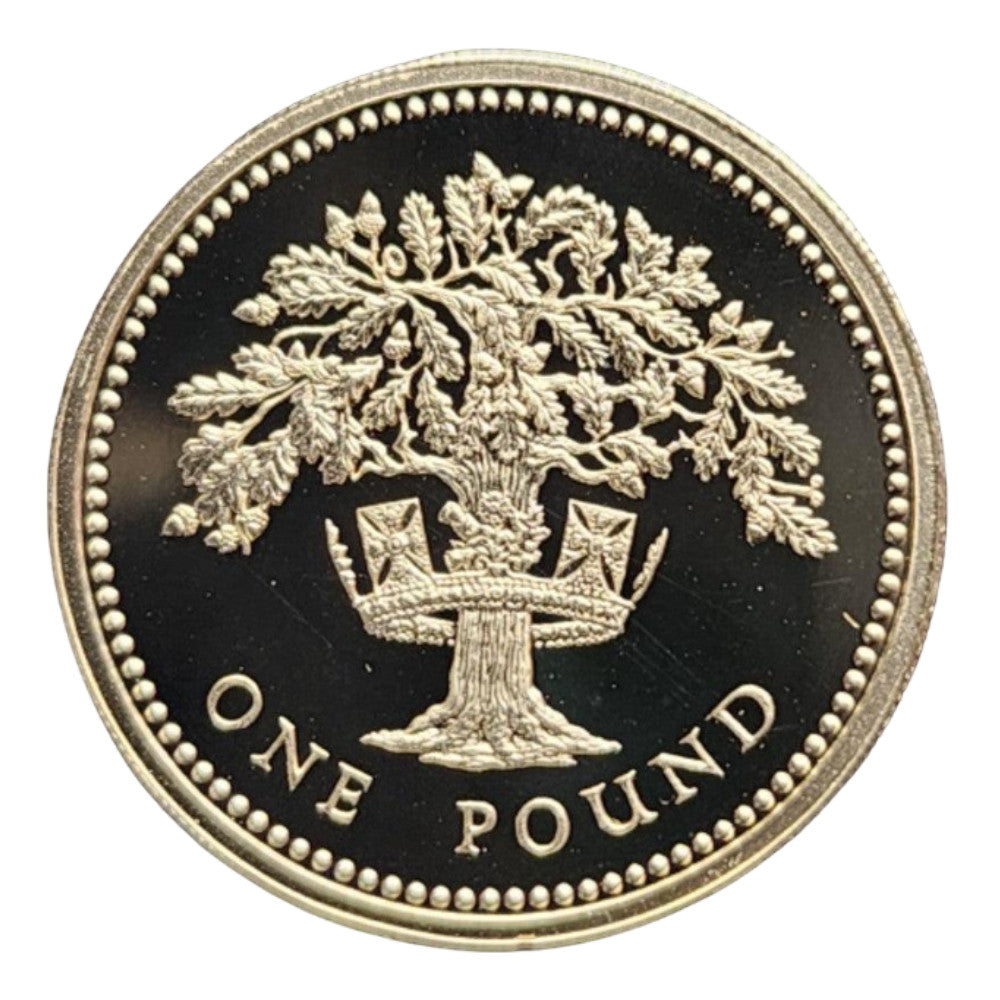 1987 Silver Proof Piedfort £1 Coin - Royal Diadem Series - English Oak