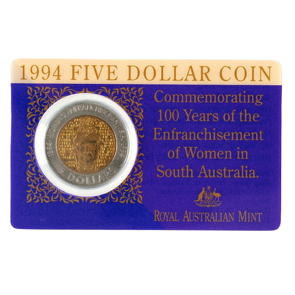 1994 Australian $5 Coin - Enfranchisement of Women - Bi-Metal Uncirculated