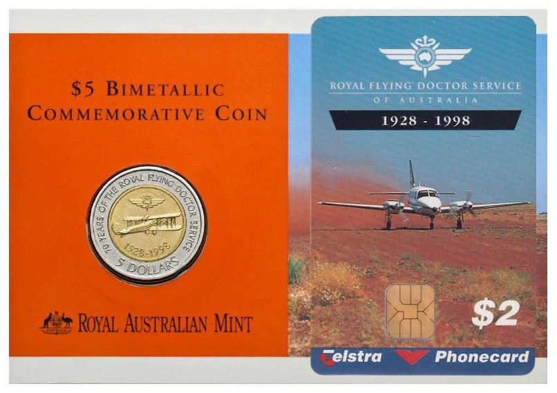1998 $5 Coin - 70th Anniversary of the Royal Flying Doctor Service with Telstra Phonecard