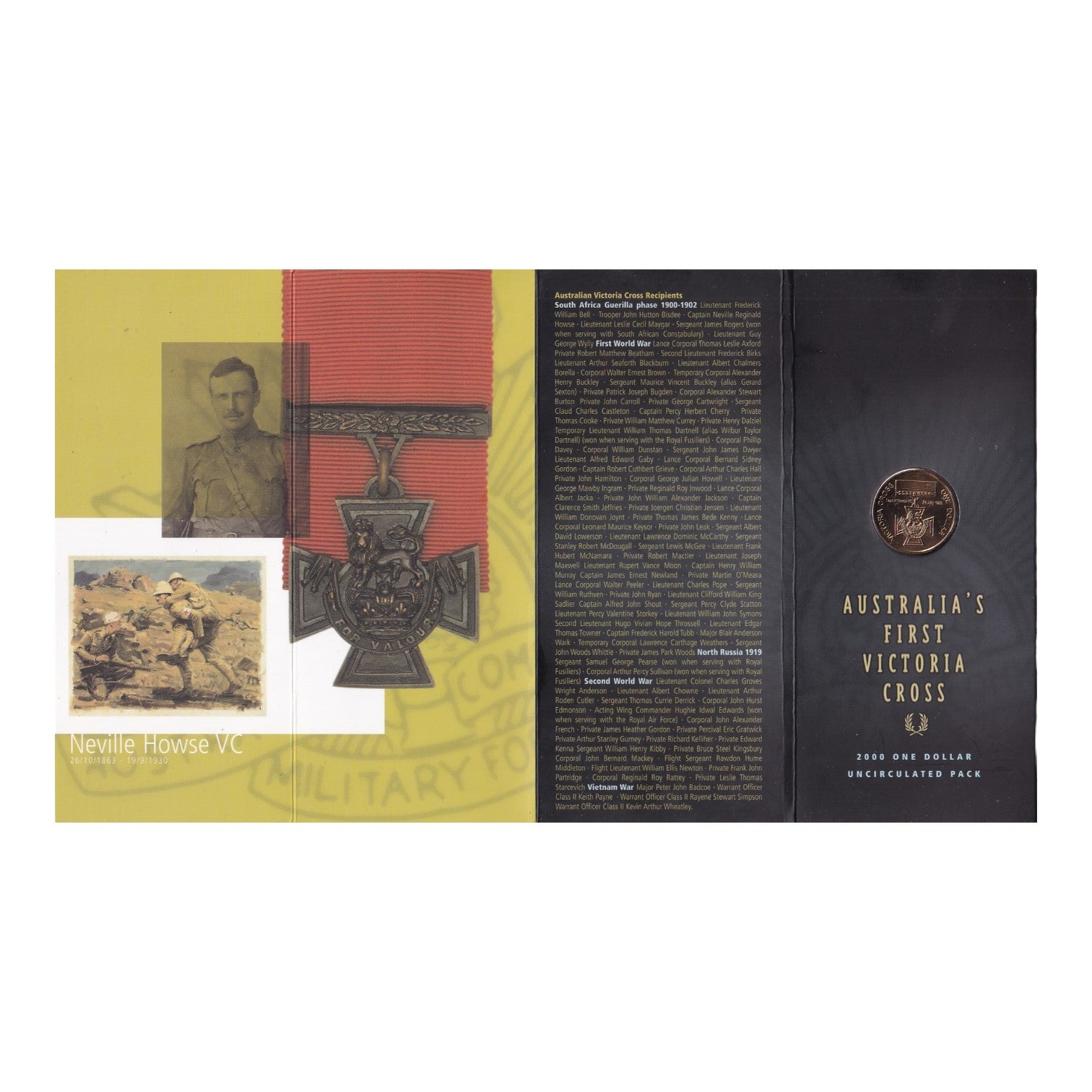 Issued by the Royal Australian Mint (RAM) in 2000, this uncirculated Aluminium Bronze (Al/Br) $1 coin commemorates the 100th anniversary of Australia's first Victoria Cross (VC) medal for gallantry. This historic medal was awarded to Captain Neville Howse on July 24, 1900.