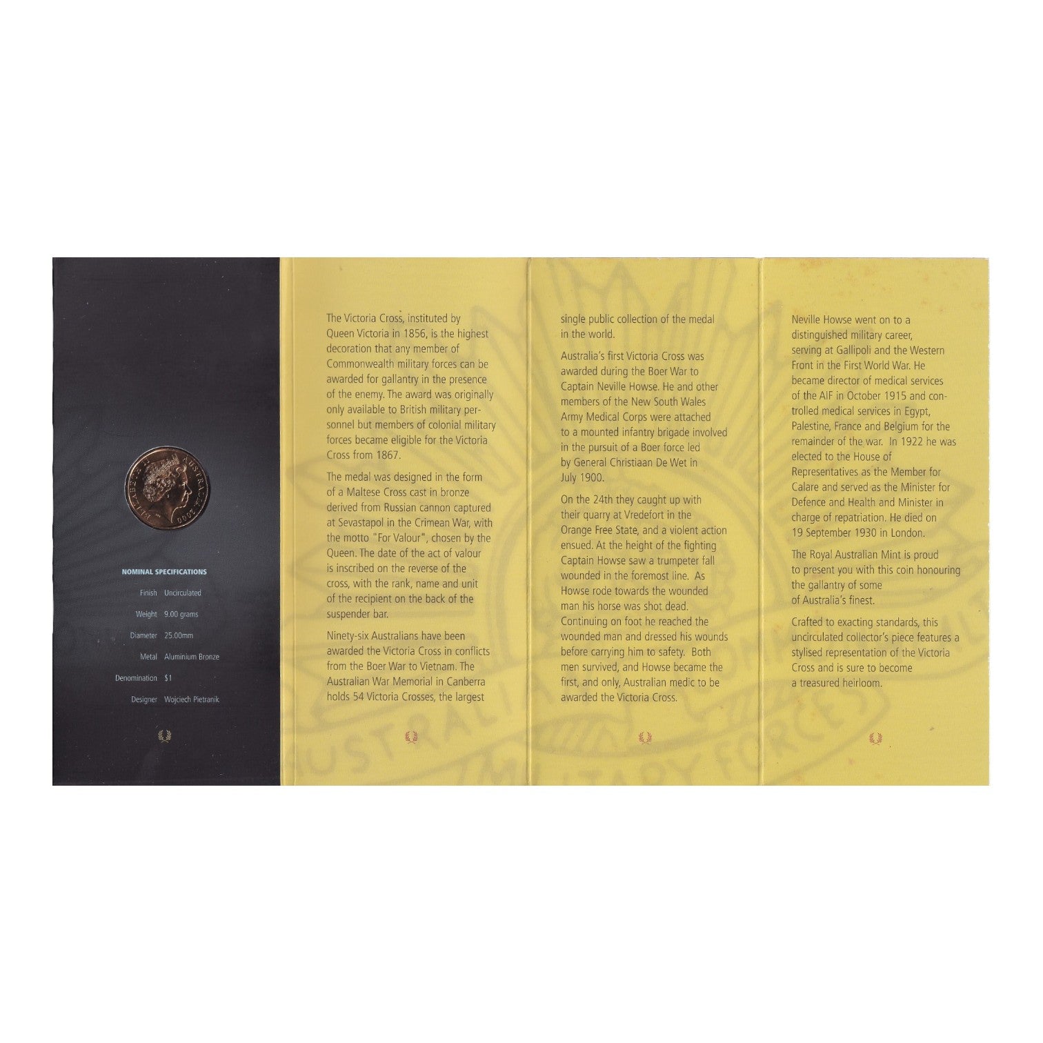 - Unique Design: The reverse, designed by Wojciech Pietranik, depicts a Victoria Cross medal with the legend "Victoria Cross One Dollar". The caption "Capt. N. Howse 24 July 1900" is featured in small letters on either side of the medal.