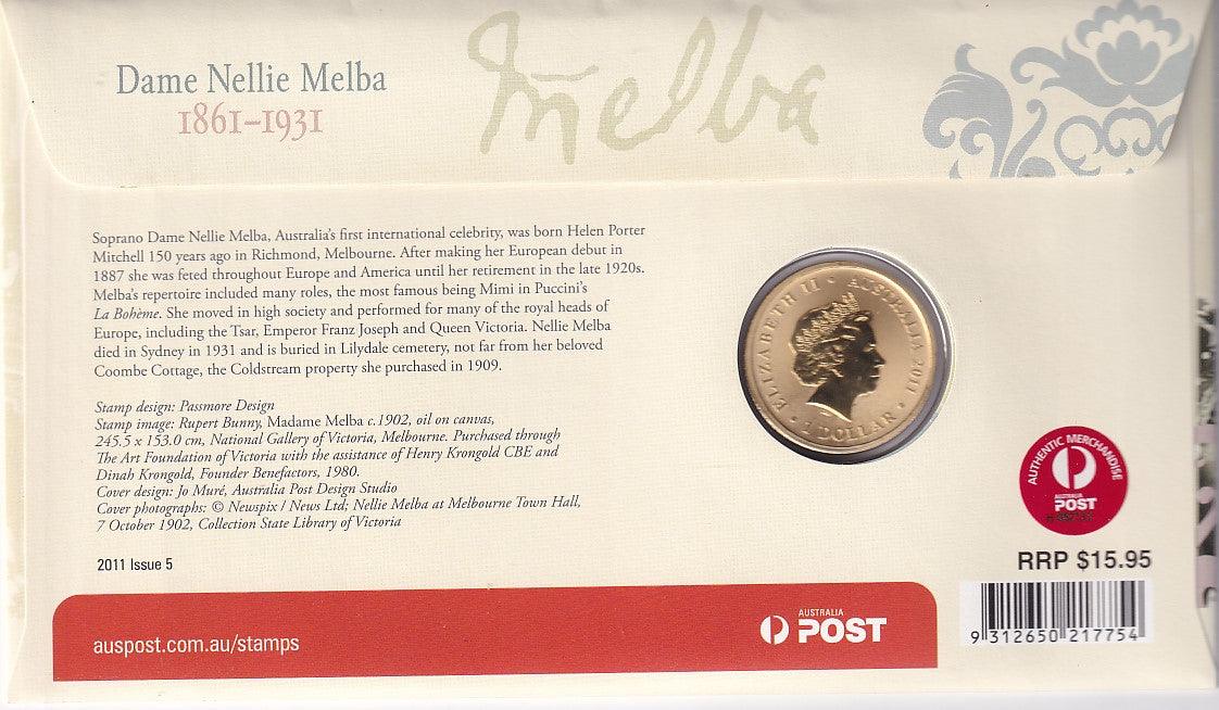 2011 Dame Nellie Melba Commemorative Postal Numismatic Cover (PNC): A Tribute to Australia's First Diva