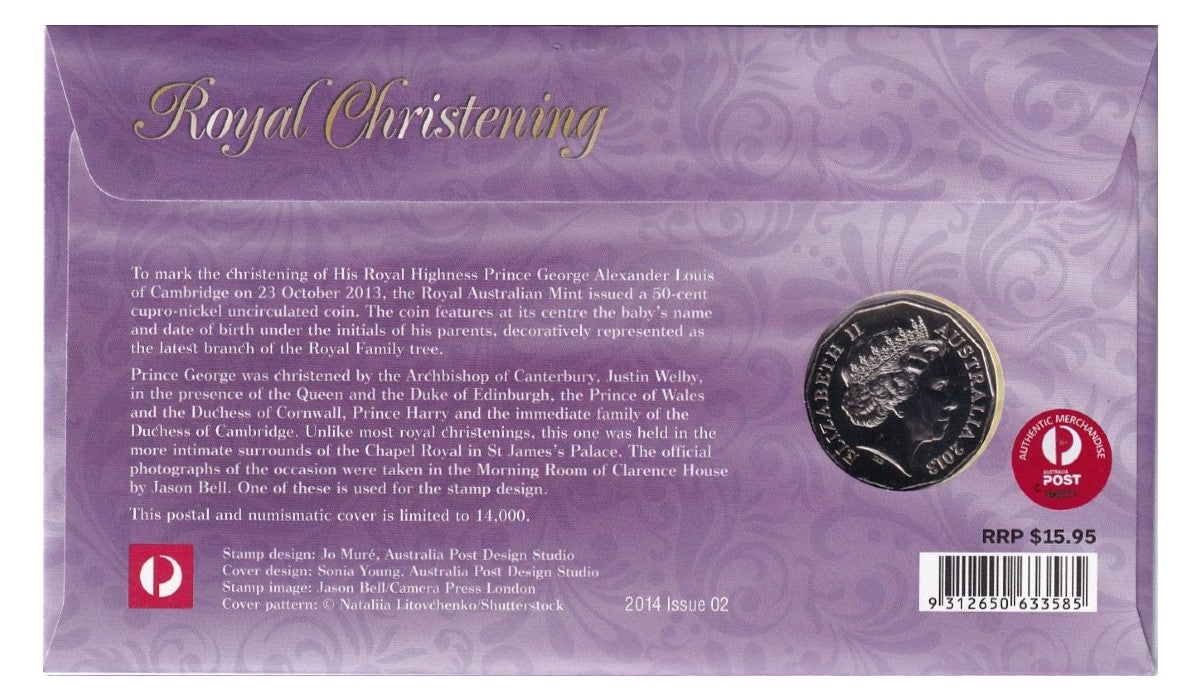 Celebrate the christening of His Royal Highness Prince George with this limited edition postal numismatic cover (PNC) from Australia Post. This exquisite collectible beautifully captures the joy and significance of this royal occasion.