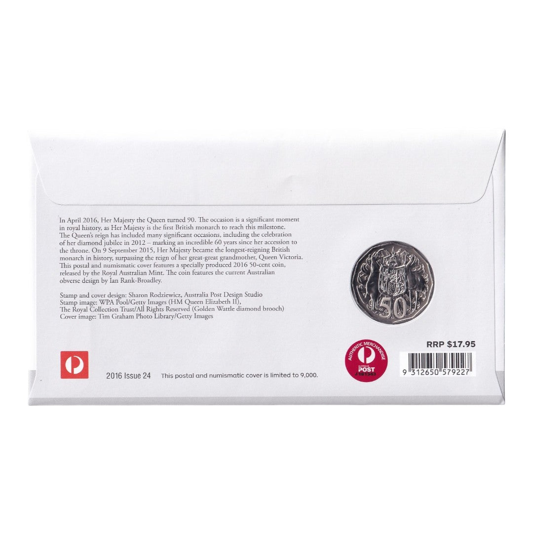 Chart Her Majesty's life and reign through the art of numismatic portraiture with this remarkable 2016 Postal Numismatic Cover (PNC), commemorating Queen Elizabeth II's 90th Birthday!