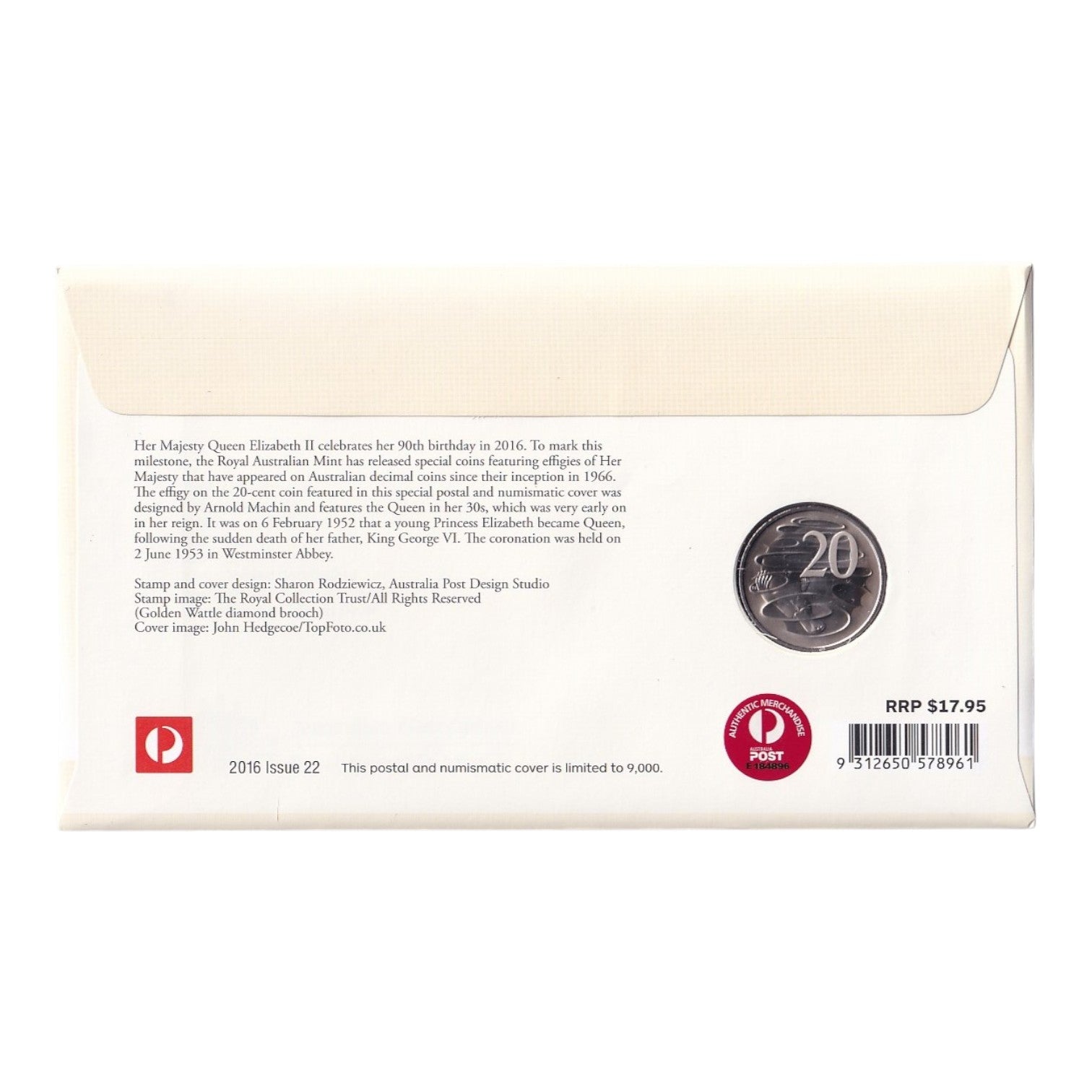 Continue charting Her Majesty's remarkable life and reign through the art of numismatic portraiture with this outstanding 2016 Postal Numismatic Cover (PNC), commemorating Queen Elizabeth II's 90th Birthday!