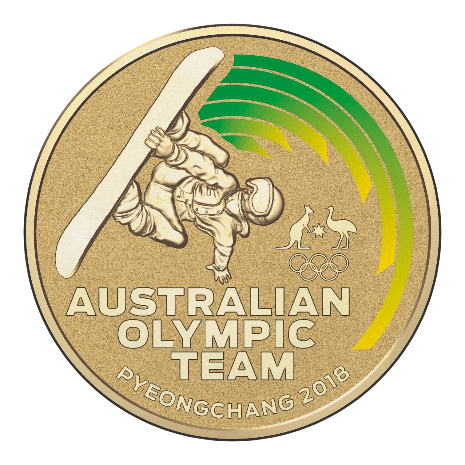 2018 $1 Coloured Frosted Uncirculated Coin - Australian Olympic Team PyeongChang 2018