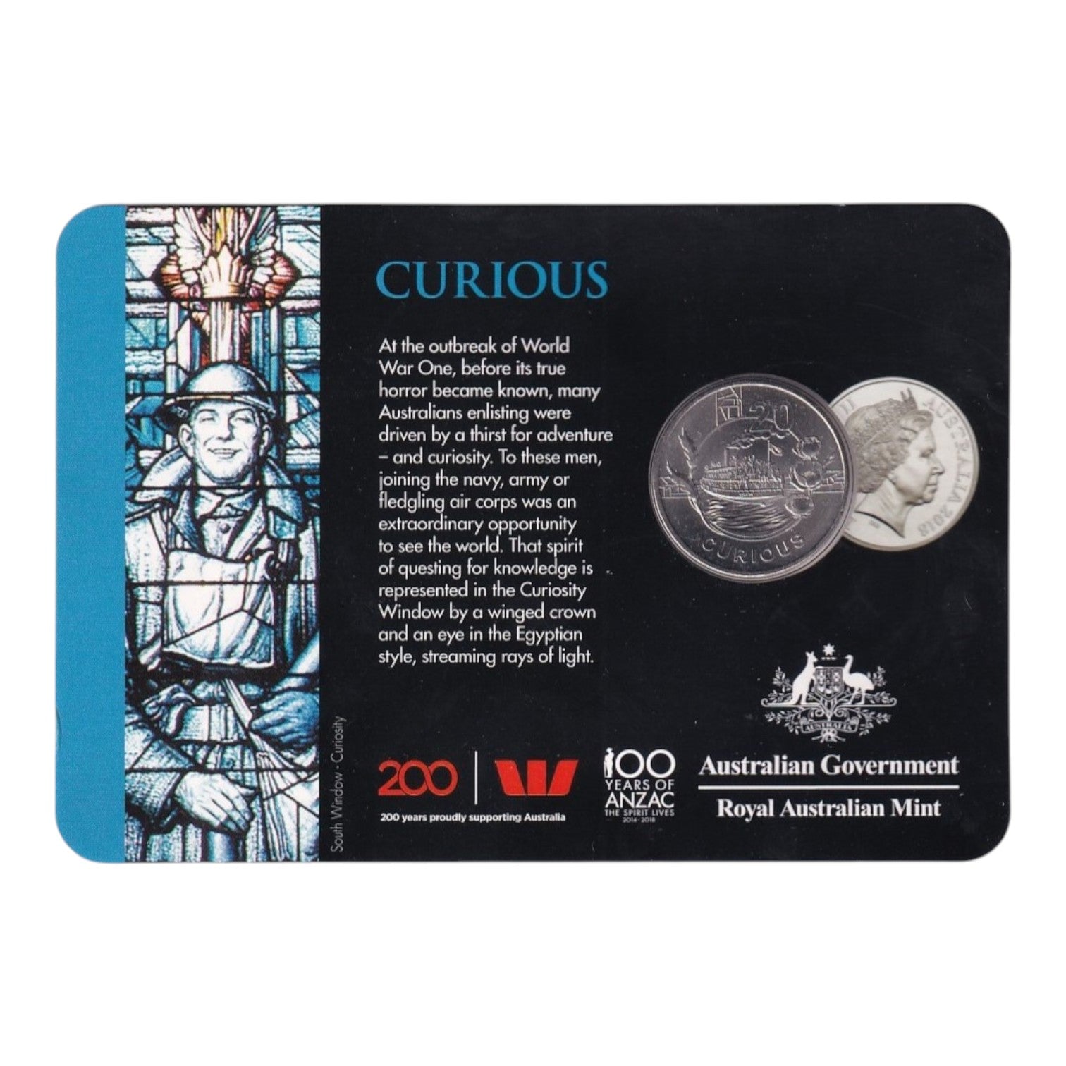This 2018 Australian Twenty Cent Coin is the final release in the commemorative ANZAC Spirit Series, celebrating the value of Curiosity—the inquisitive nature and thirst for knowledge that defined Australians embarking on the adventure of war in a distant land.