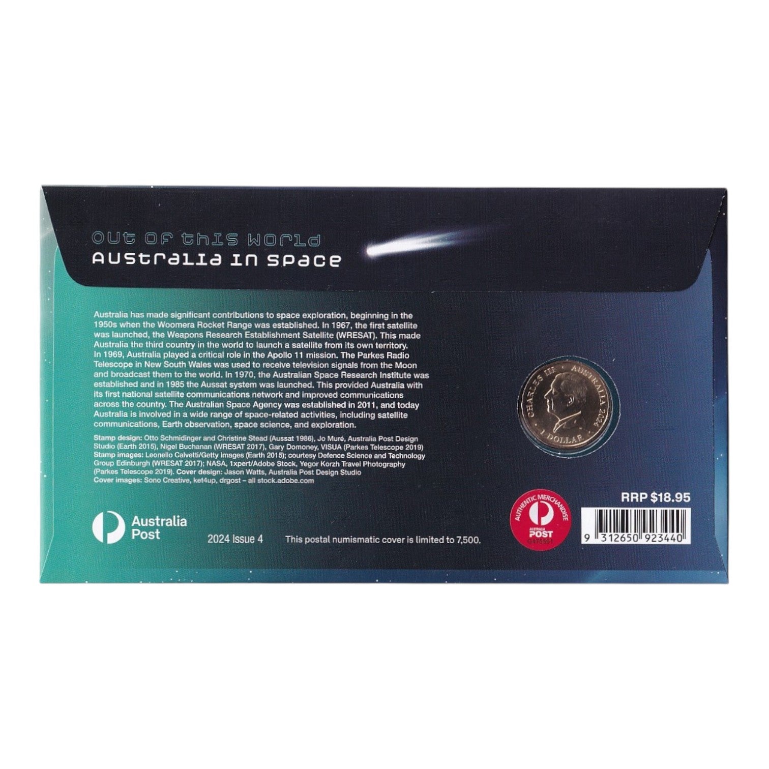 Blast off into Australian history with the remarkable 2024 Postal Numismatic Cover (PNC) - Out of this World - Australia in Space. This highly collectable release commemorates Australia's significant contribution to space exploration.