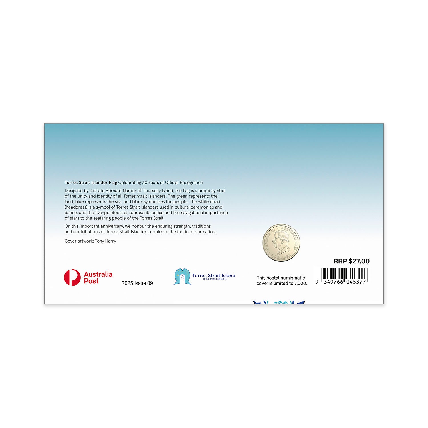 - This commemorative Postal Numismatic Cover celebrates 30 years of the Torres Strait Islander Flag as an official "Flag of Australia".