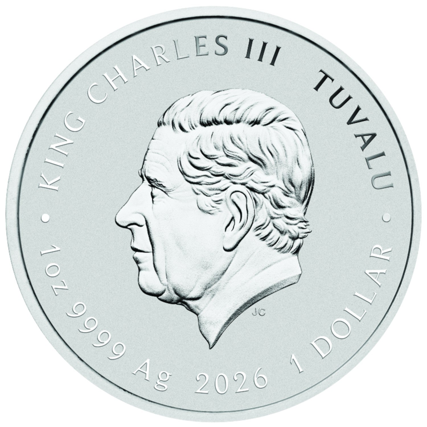 The coin's obverse portrays the Jody Clark effigy of His Majesty King Charles III, along with the weight, purity, monetary denomination, and the 2026 year-date.