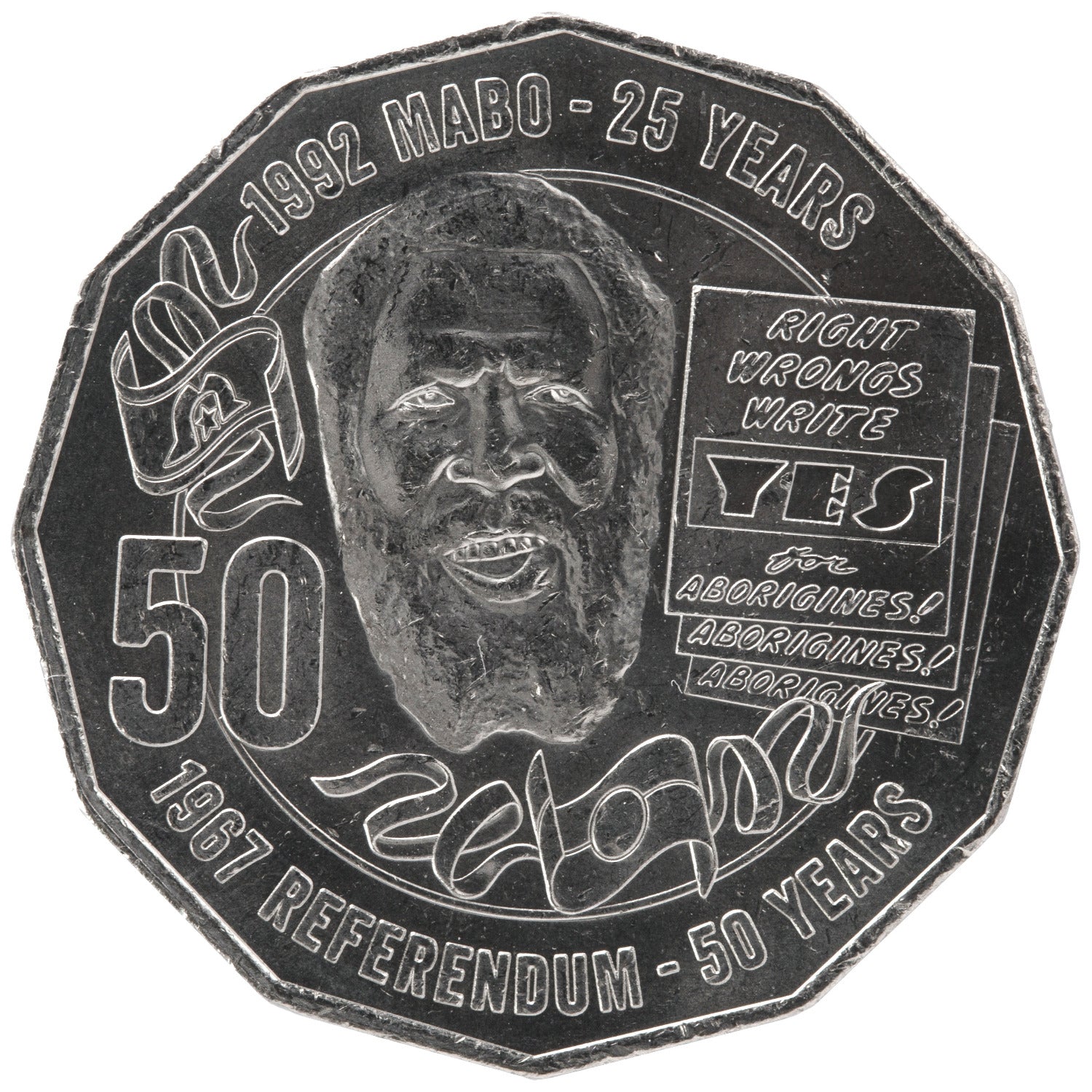 - 2017 50c Circulating Coin commemorating the 50th Anniversary of the 1967 Referendum and the 25th Anniversary of the Mabo Decision.